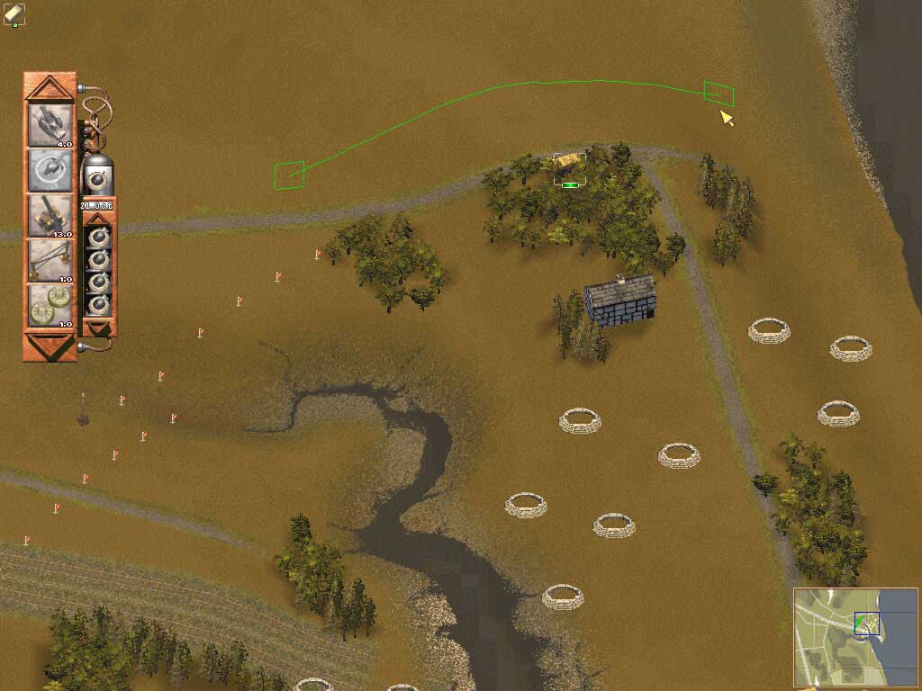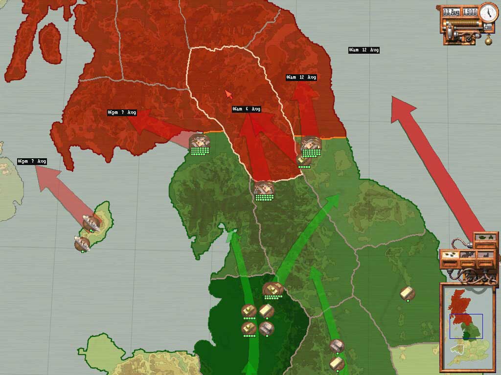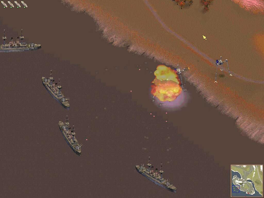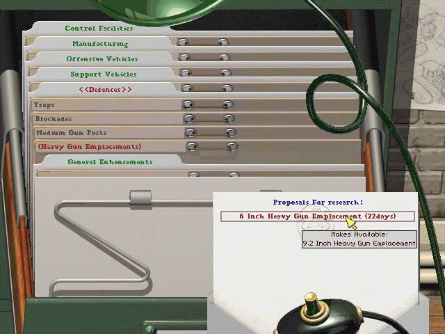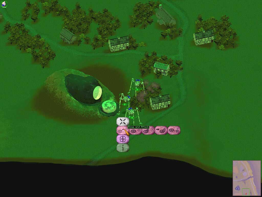ScreenshotsAll screens are jpegs and open in new windows. More screens as well as higher quality-versions of the ones below, are available if requested. Screen 1, (93,2 kB)Shot of Human battle map, major offensive coming up ... Screen 2, (38,6 kB)The filing cabinet holds the numerous research proposals available to the British. Screen 3, (42,6 kB)Four Formidable class Ironclads swat approaching Martian Scouts. Screen 4, (53,4 kB)A group of Scout Tripods just leaving their pod. The right-click menu is the main way of giving orders throughout the game. Screen 5, (74,8 kB)Martians in force (observe the number of red dots on the minimap!) assault a solid Human fortification. Screen 6, (65,3 kB)The troops tour the local pubs during a lull in the campaign. Screen 7, (76 kB)Laying the foundations for gun emplacements and plotting out lines of electrified fencing.